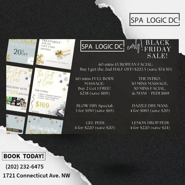 Step inside our four-story spa and escape into a world of affordable luxury and personalized care. From hair and nails to skincare and massage, Spa Logic DC offers a full range of services in a warm, welcoming environment designed with your comfort in mind..